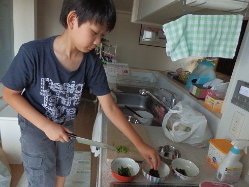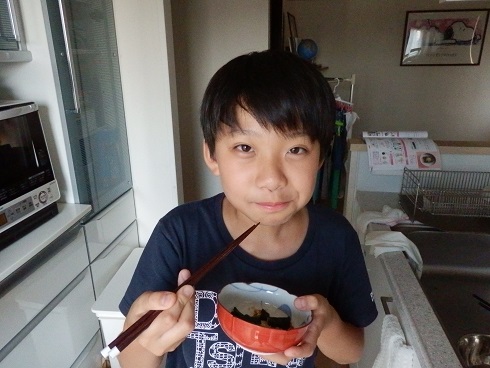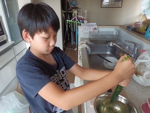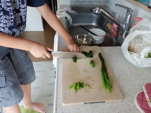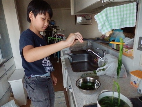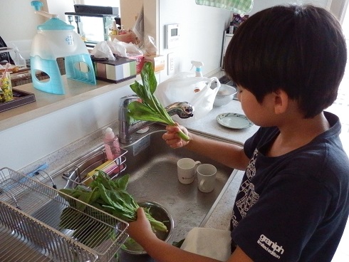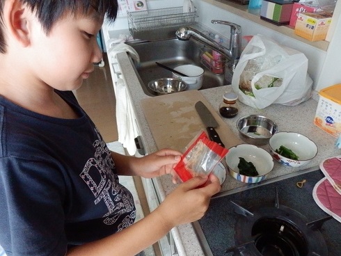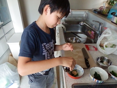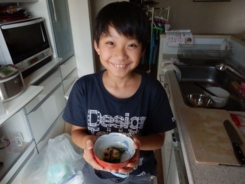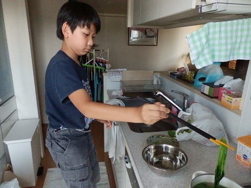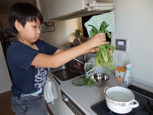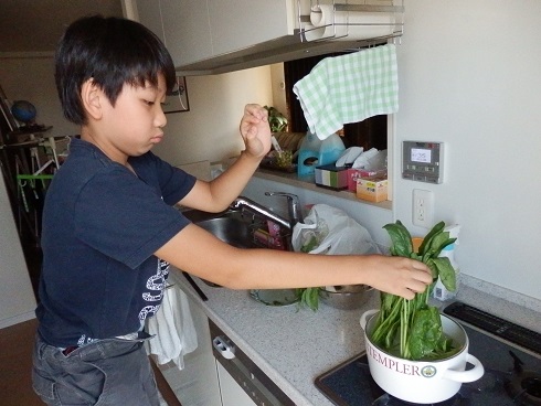 こうたんが調理実習でほうれんそうのおひたしの作り方を習ってきました。