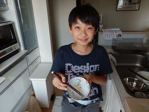 で、また家で作ってみる宿題が出ました。 今回は忘れずに写真を撮ったのでおひたしの作り方を見てみましょう。 まず、ボウルに水をはって茎の泥を落とします。 落ちたかな~? では、ゆでてみましょう。 茎の部分から入れるんですよ~。 ちょっとびびってます・・・。 もう一度沸騰したら取り出して、 水をはったボウルに入れて冷まします。 冷めたら葉の向きをそろえて束にして 手でしぼって水けを取ります。 ここまででわからないところはありませんか~? さて、ここから包丁を使いますよ~。 では、1束ずつ5センチほどに切りましょう。 全部まとめてではなく、あくまで1束ずつだそうです・・・。 全部切れたらお皿に盛りつけます。 おっと、みなさんは包丁を置いてから盛り付けましょうね~。 盛り付けられたら、かつおぶしをかけて、 お醤油もかけて、 完成です! これで夕飯の1品が出来上がりました~。 と、思ったらすぐに試食・・・。 完食~。おいしくできました! これでみなさんもおひたしの作り方おぼえましたね~。 是非やってみてくださいね~。 ナッツにもおすそ分け。 おいしくいただきましたワン! PR 忍者ブログ [PR]