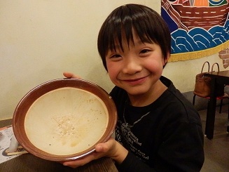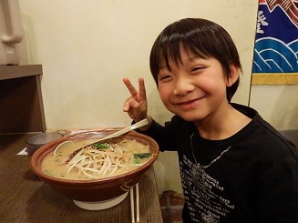 ママが過去に見たこともない立派な通知表をもらって帰ってきました。 2年生からこれで大丈夫なのでしょうか まあ、こうたんだからという理由で立派な成績でもとがめられることはありません。 だって、こうたんだから で、学校から帰ると午後の便で札幌へ。 空港に着くと「新千歳空港、雪のため着陸できない場合は羽田空港へ引き返します」との案内が しかもこうたんの乗る1つ前の3時の便はすでに欠航が決定済み 一抹の不安を抱えながら飛行機に乗り込みましたが、なんとか無事に北海道に上陸しました 新千歳空港に着いて空港まで送ってくれたパパに「無事に着いたよ~」ってメールをしたら 「まだ家についていません」だって。 我が家は北海道より遠いようです・・・。 さて、新千歳空港到着がすでに6時近かったために今夜は札幌駅前のホテルに宿泊です 夕飯はこうたんのリクエストでラーメン。 さあ、注文の品が届きました。 いただきま~す。 よく食べますねぇ。 スープまで飲み干して完食。 この小さいお腹のどこにはいってしまうんですかねぇ。 PR 忍者ブログ [PR]
