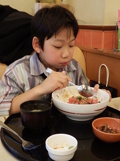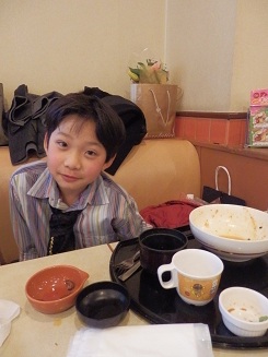 今年の曲目は「名探偵コナンメインテーマ」です。 ロビーではばあば達の撮影会でちょっと迷惑そう・・・。 練習嫌いのこうたん、直前まで完成せずに見ているほうもハラハラ。 が、何故は本番はばっちり決めてくれるこうたんです。 まあ、細かいところまで見ればいろいろとありますが、とりあえず途中で演奏が止まることなく無事に弾きこなしました。 本番に強いのも才能ですかねぇ。 で、こうたん一人の3分弱の演奏に親族一同集合。 しかもプレゼントとお小遣いまでもらいました。 演奏料とれるなんてもしかしてプロ?! そしてみんなで遅めのお昼ご飯。 こうたんは演奏が終わってほっとしたのか、お腹が空いていたのか、ねぎとろ丼をあっという間に完食。 何はともあれこれで行事も一段落。 学校もあと少し! ちなみにこうたん、インフルエンザで出席停止になった以外は小学校に入ってから一度も休んでいません。 すごいねぇ。 PR この記事にコメントする