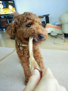 むしゃむしゃしてます。 一応分類はおやつですが、繊維なので食べるというよりはおいしいおもちゃといったところでしょうか? 歯磨き代わりにもいいらしいです。 これで一人でお留守番できるといいんだけどね~。 ちょっと期待。 こうたんにつかまってちょっと迷惑そう・・・。 忍者ブログ [PR]