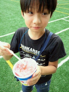 いつもは夏休み最後の土曜日に開催されるのですが今年は学校が改修工事だったからでしょうか、9月1日開催でした。 まずは、大好きなスーパーボールすくい。 こんなゲームもありました。 やっぱりかき氷でしょ! こうたんのバックを見てお気づきでしょうが、学校の校庭が人工芝になったんです。 とってもふかふかでした! ついでに。 トリミングでかわいいしっぽにしてもらいました。 かわいいねぇ。