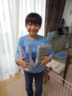 毎日怒られながら9年が経ってしまいました・・・。 あ、さすがに赤ちゃんの頃は怒られてなかったから8年位か・・・。 まずは乾杯する前に抱負を。 悩むこうたんに、 「ママに怒られないとか、宿題は遊ぶ前にやるとか、勉強がんばるとかいろいろあるじゃない。」 とヒントを出してあげたのですがどれも約束するのは無理だとわかっているのか悩むこうたん。 妥協して「勉強をがんばる」になりました。 そしてやっと乾杯ができお寿司にありつけたこうたん。 本当に好きね~、お寿司。 そしてこうたんがリクエストしたプラレールアドバンスをもらってうれしそう。 早速遊びます。 誰も相手にしてくれないナッツがのぞいています。 さてさてお次はケーキです。 鼻息でろうそくの火が消えてしまって大笑い。 もう、かわいいこうたんを撮るのは至難の業となってまいりました・・・。 楽しい1日でしたね~。 皆様ありがとうございました~。 ついでにナッツも。 やっとかわいいと言ってもらえるようになりました・・・。