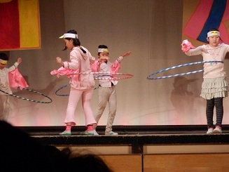 音楽会、展覧会、学芸会と毎年順番にやるので、小学生になって初めての学芸会。 今は主役のいないみんなが平等に参加できるものとなっております・・・。 で、こうたんはフラミンゴの役をやりました。 みんな一言はセリフがあります。 そして劇の中でサーカスをやるという設定で一輪車をしたり、ダンスをしたりけん玉をしたり。 こうたんフラミンゴはフラフープ。 久しぶりにやったので、できなくなっていたみたいで本番直前でやっと感を取り戻したそうです。 風邪もひかずセリフも間違えず無事に終了しました~。 そして雨男のこうたん、今日も雨でした・・・。 PR