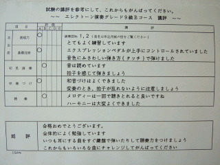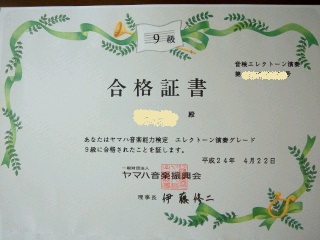 4月に受けたヤマハのエレクトーンの9級グレード。