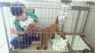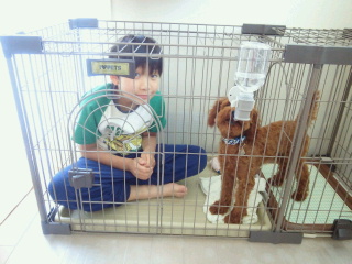 ナッツのケージに入ってみました。 2匹じゃ狭そうねぇ。 迷惑そうなナッツ・・・。 でも、今日は1匹で広々! ママが明日の朝から学校に行かなくてはいけないので、ナッツの社会化と練習を兼ねて1泊2日の合宿です。 いつもトリミングしてくれるところなのでとっても安心。 夜の報告ではだいぶ甘えているみたいですよ~。