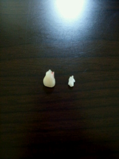ずっと気になっていたのでやっと抜けてよかったね~。 ちなみにちょうど今、同じ年頃のナッツとこうたん。 ナッツの歯も生え変わり中です! こうたんの歯とナッツの歯。