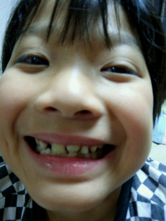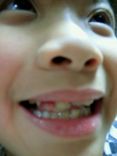やっと上の前歯の3本目が抜けました~。