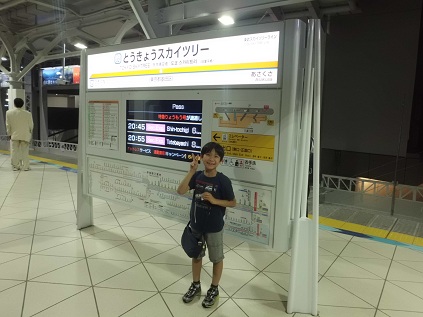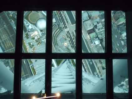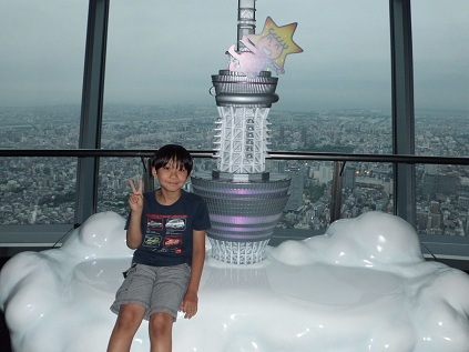 ママはナッツがいるのでお留守番です。 予約は午後6時なのですが、お店も見るので学校から帰り次第すぐに出かけました。 そして一番最初に向かったのが・・・。 期待を裏切らないこうたん。 お店と言ってもこうたんのみたいお店はそんなにたくさんあるはずもなく、ちょっと時間を持て余してしまったそうです。 なので、行列一番乗り! どうですか?展望台からの眺めは? 記念撮影スポットでパチリ! 下が見えます~。 こうたんは高いところが全然怖くありません。 予約時間が6時だったので、昼間と夜、両方の景色が見えてとってもいい時間だったみたい。 さすがパパ! 外に出てから全景も撮らなくちゃね! 子供はこんなこともできるからいいねぇ。 でもやっぱり最後はこれでしょ! 今日一番の笑顔・・・。 10時過ぎにやっと家に到着。 お疲れ様でした~。