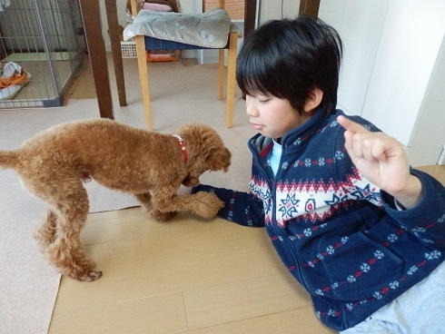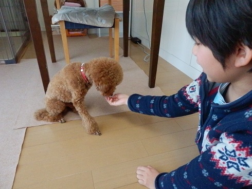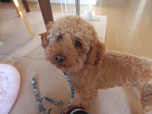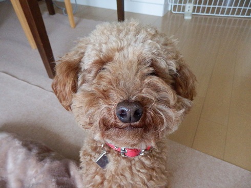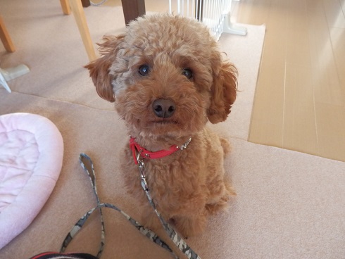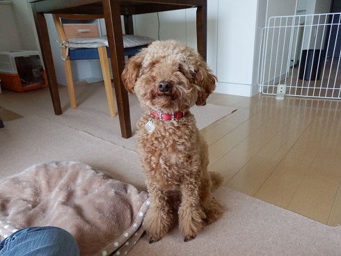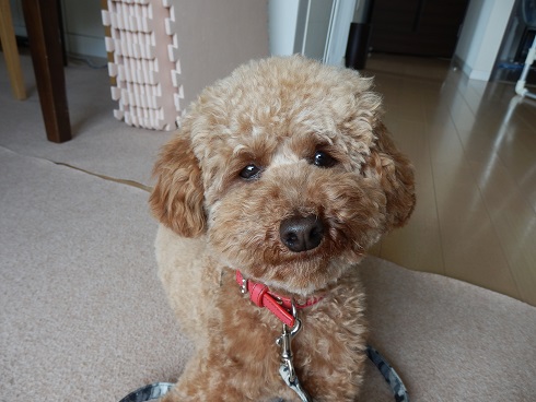 ナッツはもちろん自分が上だと思っています。 そして、もしかすると家族で一番上だと思っているかもしれません。 だから、家族を守るべくちょっとした物音にも吠えるように・・・。 とトレーナーさんに言われました。 なので、 おすわり! よし! ぼくはいい子だからこうたんの言うこともしっかり聞くワン! と見えますが、 まだそこにおやつ残ってるだろ~、早くよこせ~!! って感じなのです・・・。 これはまずいってことでトレーナーさんに教わって最近はクレートで過ごす時間を長くし、室内でもリード装着なナッツなのです。 早くナッツからリーダーの座を奪わなくては! リード装着から約1週間。 少しは効果が現れてきたかしら?