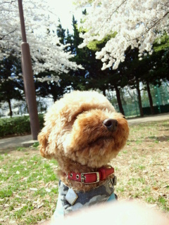 まずはビフォー。 で、アフター。 今回はあんまり変化がないんですよね~? というわけで面白みのないブログになってしまいました・・・。 さて、東京の桜も満開になった日、いつものように公園へお散歩に。 桜がとってもきれいでした~。 お散歩しながらお花見。 桜と一緒に写真撮りたかったのにやっぱり無理か・・・。 こっち見ないし・・・。 しゃがむと走ってくるのでこれが限界。 おやつタ~イム。 目線ばっちり! やっぱり花より団子のナッツか!