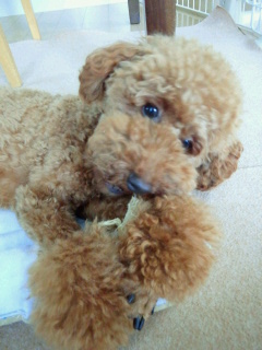 ナッツ、1日に11月のトリミングに行ってきました~。 では、ビフォー。 もさもさ。 頭大きくなってます・・・。 では、アフター。 あら、すっきり。 鼻周りを少し小さめにカットしてイメチェン中・・・。 プチアフロ目指してます! やっとかわいいトイプードルの仲間入り・・・。