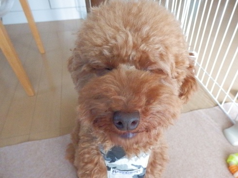 あ、今回はボディはカットなしなので、グルーミング+顔カットでした・・・。 では、ビフォー。 もじゃおですね。 アフター。 あら、残念。 お目目つぶってます。 では、もう一度。 うん、かわいいかわいい。 でもこの1週間後にばあばの家に行ったら、 「そろそろナッツもトリミングだね!」と言われました。 トリミングしたてだったのに・・・。