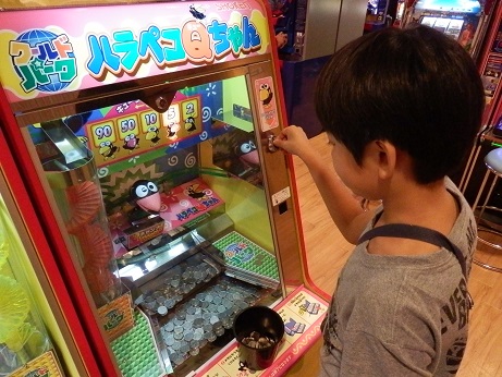 旅行のメインはプール。 なので、宿泊先はCMでもおなじみのホテル三日月に決定。 朝9時半にナッツをホテルに預けて、いざ出発! いつもと違う大きな荷物と一緒に預けられたナッツ、何かを察したのか落ち着きがありません。 みんなで車に乗ったのになんで僕だけここ~?!って思っているんでしょうか? だって、ナッツはお留守番なんだもん。 楽しんでくるからナッツもホテル生活楽しんでね~。 まずはこうたんのリクエストでアウトレットへ。 ここでレゴをゲットしたこうたん。 ご機嫌です。 で、プールに入るために早めにチェックイン。 が、ホテルに着くと早くレゴを作りたくてしょうがないこうたん。 プールよりレゴのようです・・・。 だったら、家でレゴ作ってれば~!! レゴも完成したところで夕飯の時間が遅いのでごはん前にプールに行くことにしました。 5時過ぎから入ったので空いてます! 楽しそうですね~。 夜はライトアップもしてます。 流しこうたん・・・。 2時間ほど遊びました~。 で、夕飯を食べてから 縁日に行って、 遊んで 賞品ゲット! そのあとはゲームセンターに行ってまたまた遊び、 大満足でお疲れのこうたんはせっかくの大浴場に行かずに寝てしまいました~。 珍しく平穏な1日だったこうたん一家の旅行初日でした。
