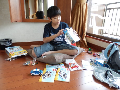 それはレゴショップがあるからです。 アウトレットに行くと必ず1つはレゴをゲットして帰るこうたん。 でも、誕生日でもクリスマスでもないただの夏休み、買ってあげる理由がありません。 というわけで4年生のこうたん、そろそろ日本地図を覚えないといけないそうで・・・。 塾の夏休みのテキストにも「夏休み中に覚えましょう」みたいにかいてありました。 じゃあ、ちょうどいいじゃない! 1都道府県の場所を覚えたら100円。 つまり全部覚えれば4700円分もレゴが買えると! というわけで交渉成立となったのですが全く勉強しようとしないこうたん。 大丈夫なんですかねぇ? またぎりぎりになって覚えてなくて買ってもらえなくてキレるんじゃないでしょうねぇ! と、心配しましたが物がかかるとものすごく実力を発揮するこうたん。 見事に47都道府県覚えました~。 というわけでこのようにレゴをゲットできたのでした~。 ちなみに26日から学校のこうたん、本日23日現在夏休みの宿題は終わっておりません。 ママは知りません!