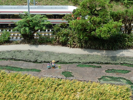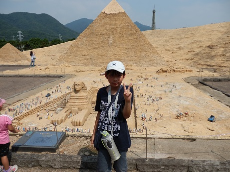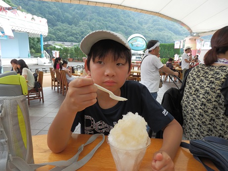 朝食を食べて、 暑くなる前にチェックアウトし、 こうたんの行きたがっていた東武ワールドスクエアへ。 暑い・・・。 早速カメラ片手に撮りまくります。 東京駅、 スカイツリー、 国会議事堂、 お、こうたんが写ってます。 新幹線、 飛行機、 電車、 電車、 電車・・・。 ミニチュアの中にひよこちゃんを探すクイズ実施中。 いました~。 ソラカラちゃんも発見! 日本コーナー以外はあまり興味がないようで写真も少な目。 というか暑くてゆっくり見学なんてできません・・・。 それでも とりあえず全部見学してきました~。 アメリカコーナー。 ピラミッド。 これは誰? 最後に日本コーナーに戻ってきて 金閣寺、 いなかの風景、 おや? 発見! カールおじさん。 そして天然氷のかき氷。 おいしそ~。 電車の動画を撮ると言ったこうたんに電池がなくなるからダメと言ったらご機嫌斜めのこうたん、ふてくされながらも、食べてます。 怒ってても食べるのね・・・。 そしてこうたんのご機嫌も斜めだし、ナッツのお迎えもあるので鬼怒川を後にします。 少し遅めの昼食を いつものイオンで食べ、 4時過ぎに家に到着。 シャンプーをしてもらってきれいになったナッツをお迎えに行き、無事旅行も終了。 お疲れ様でした~。 一番お疲れのナッツ。 もう動けません・・・。