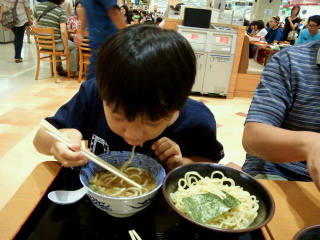 もちろん前から食べてみたかった「シロノワール」を食べに。 他にもハムサンドとみそかつサンドを注文。 どれもかなりのボリュームで、一人で一皿食べるのは結構大変・・・。 シロノワールと記念撮影。 こうたんはソフトクリームがチョコ味じゃないので、あんまりお気に召さなかったようで・・・。 うん、まあおいしかったけどわざわざ食べに行くほどでもないかな~・・・。 そしてお会計、結構いい値段・・・。 なので今日の夕飯は質素にマルちゃん正麺の冷やし中華にしました~。
