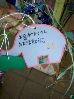 うんうん。 なりたいものはかなり長いこと変わっていません。 いっぱいお勉強して夢がかなうといいね~。 これも大事だね。 この短冊もお友達と3人で楽しそうに飾ってたね~。 まだあるのかな? あんまりはずかしいお願い事書かないでください・・・。 しかも、使ったらたまりませんよ~。