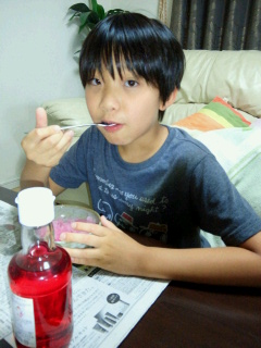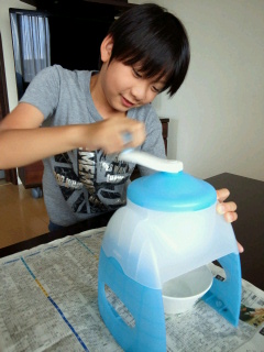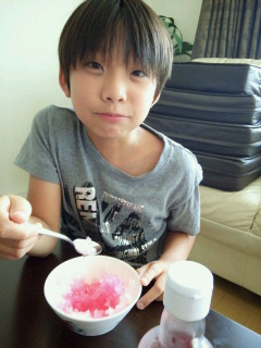 猛暑のおかげでやっと買ってもらえたこうたん。 さっそくいちごシロップを買ってきて作ってみました。 パパの教えた量ではシロップが薄かったようで・・・。 思う存分かけて味わっていました。 今日も学校から帰ってきたらランドセルも出しっぱなしで早速かき氷作り。 いい笑顔! これで今年の夏はアイス買わなくていいわね~!